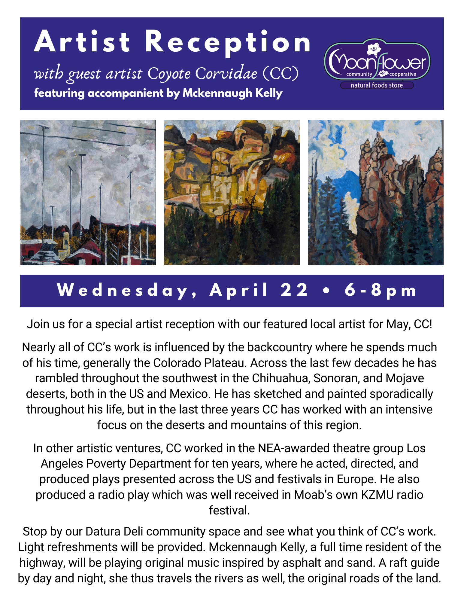 We also host an annual owner drive, community events, 5% Days, Round Up at the Register fundraising campaigns, and participate in the Moab ArtWalk. Learn more about our community outreach here.